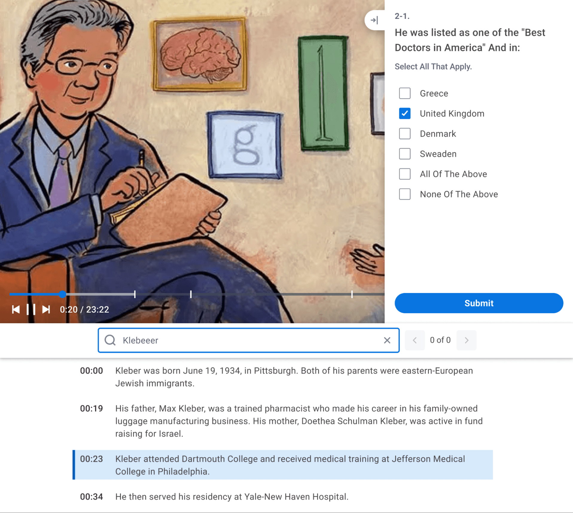 I designed an interactive learning experience that combined video, quizzes, and ML-powered transcription.