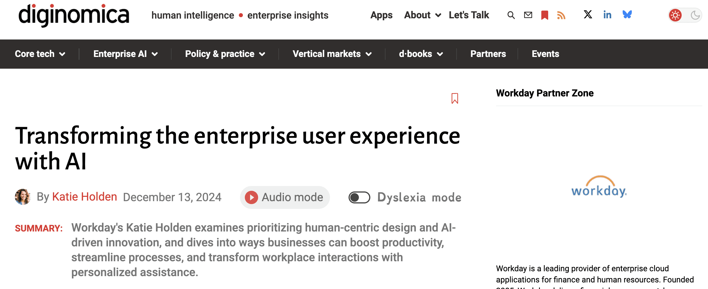 diginomica.com (December 13, 2024) : Transforming the enterprise user experience with AI by Katie Holden (VP of AI)